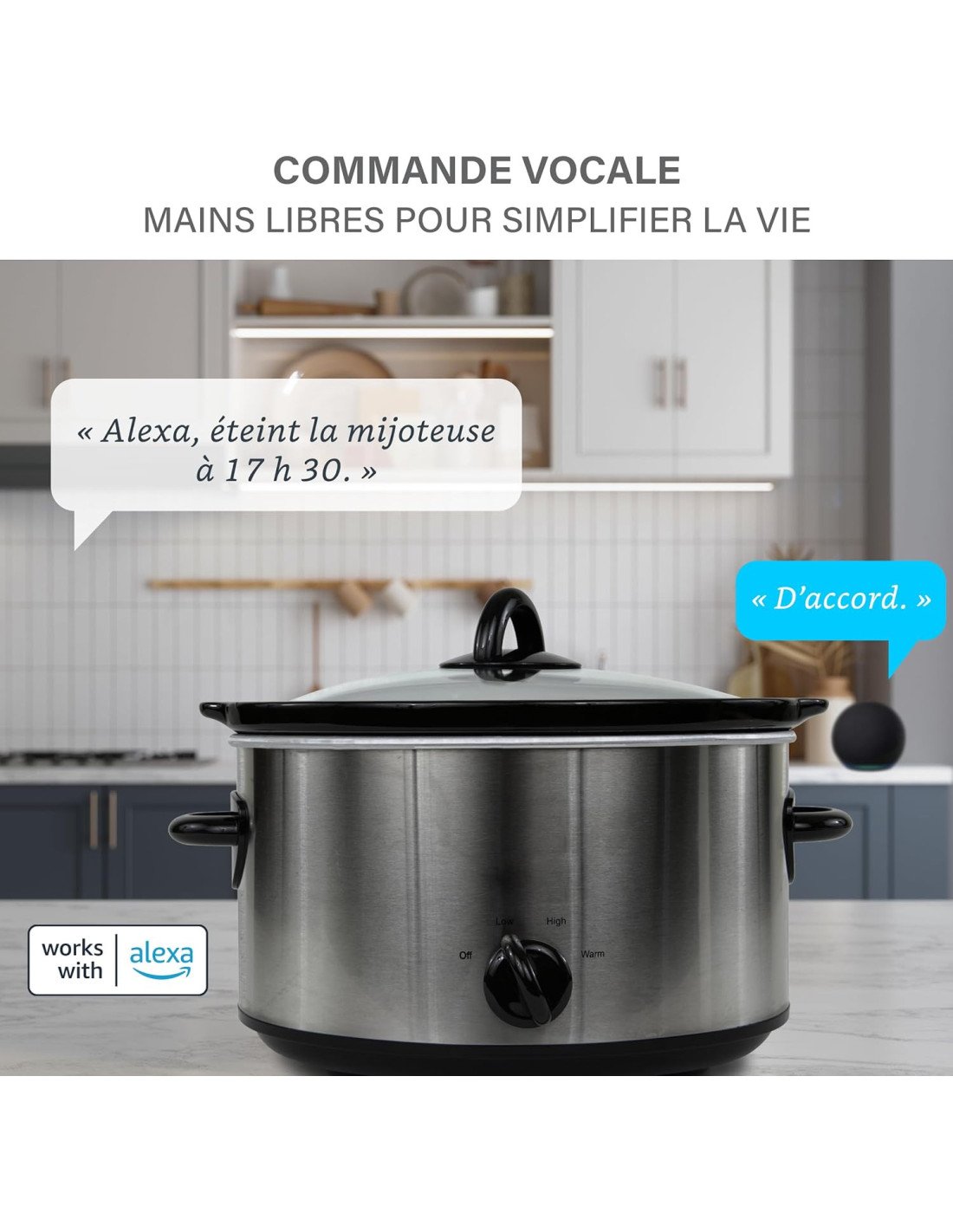 - Contrôle vocal pratique : Allumez ou éteignez vos appareils d'un simple mot.