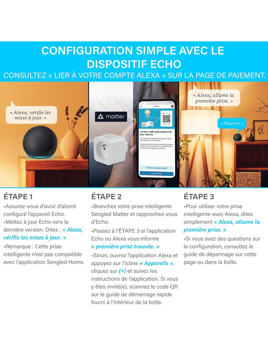 Prise intelligente Sengled compatible Matter fonctionne avec Alexa
